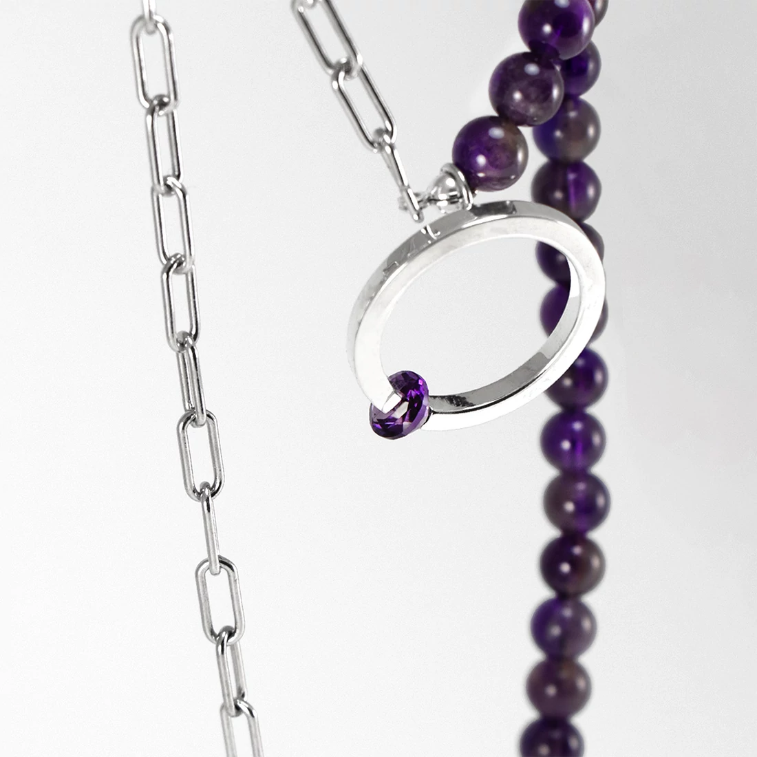 A kollekció védjegyeivel készült kapszulakollekció a nyár vidám, színes hangulatát idézi. A minimál dizájnt az ametiszt ásvány gyöngyök mellett, egy valódi ametiszt drágakő egészíti ki. A nyaklánc 43 cm hosszú, az ásványokat pedig egy tömör, hosszúkás anker lánc köti össze.