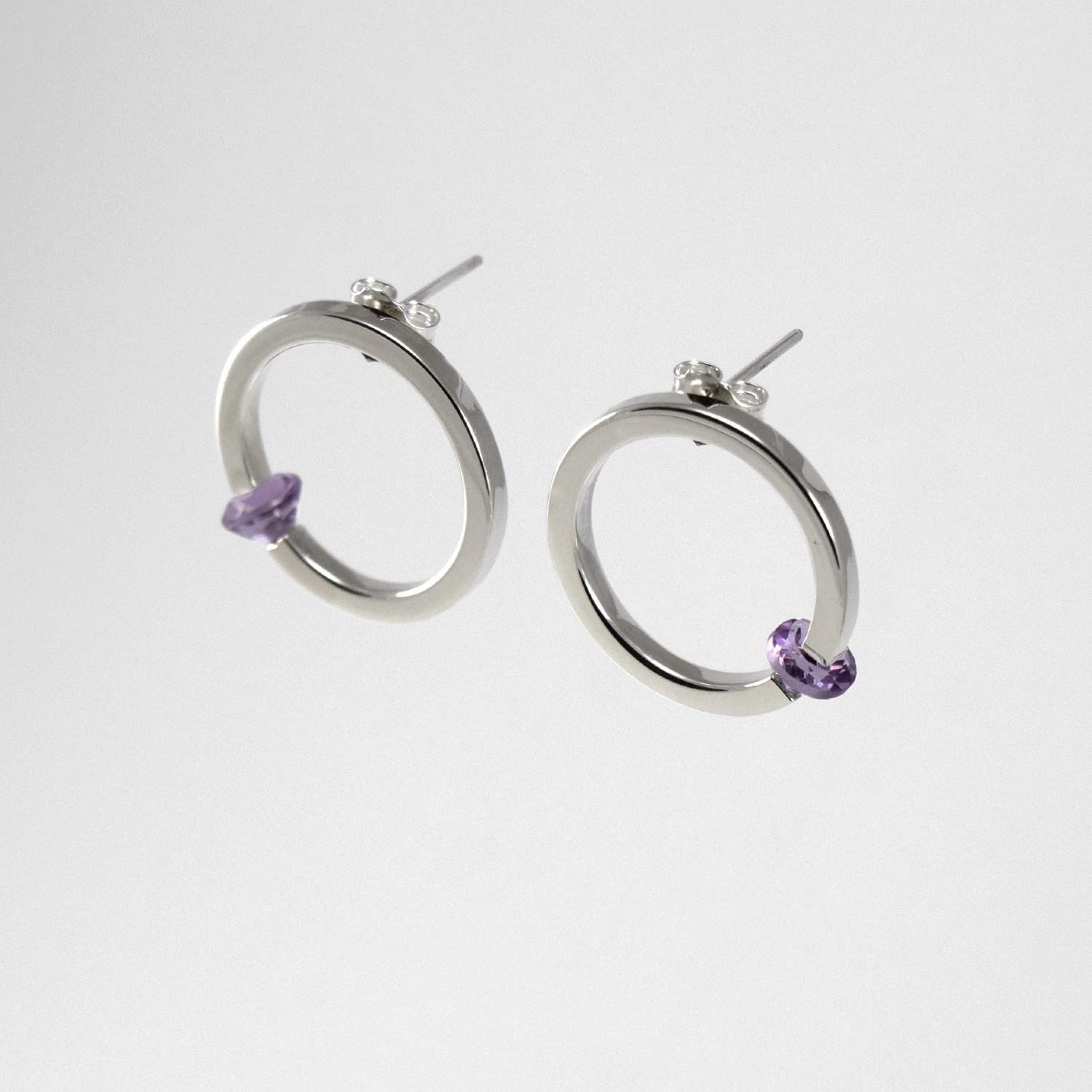 A fülbevaló egyszerű és letisztult designnal rendelkezik, mely a minimalizmus és az elegancia tökéletes ötvözetét nyújtja. Valódi, természetes ametiszt kövek díszítik. Kényelmes, egyszerűen hordható bedugós darab, ideális választás mindennapi viseletre és különleges alkalmakra is egyaránt.
