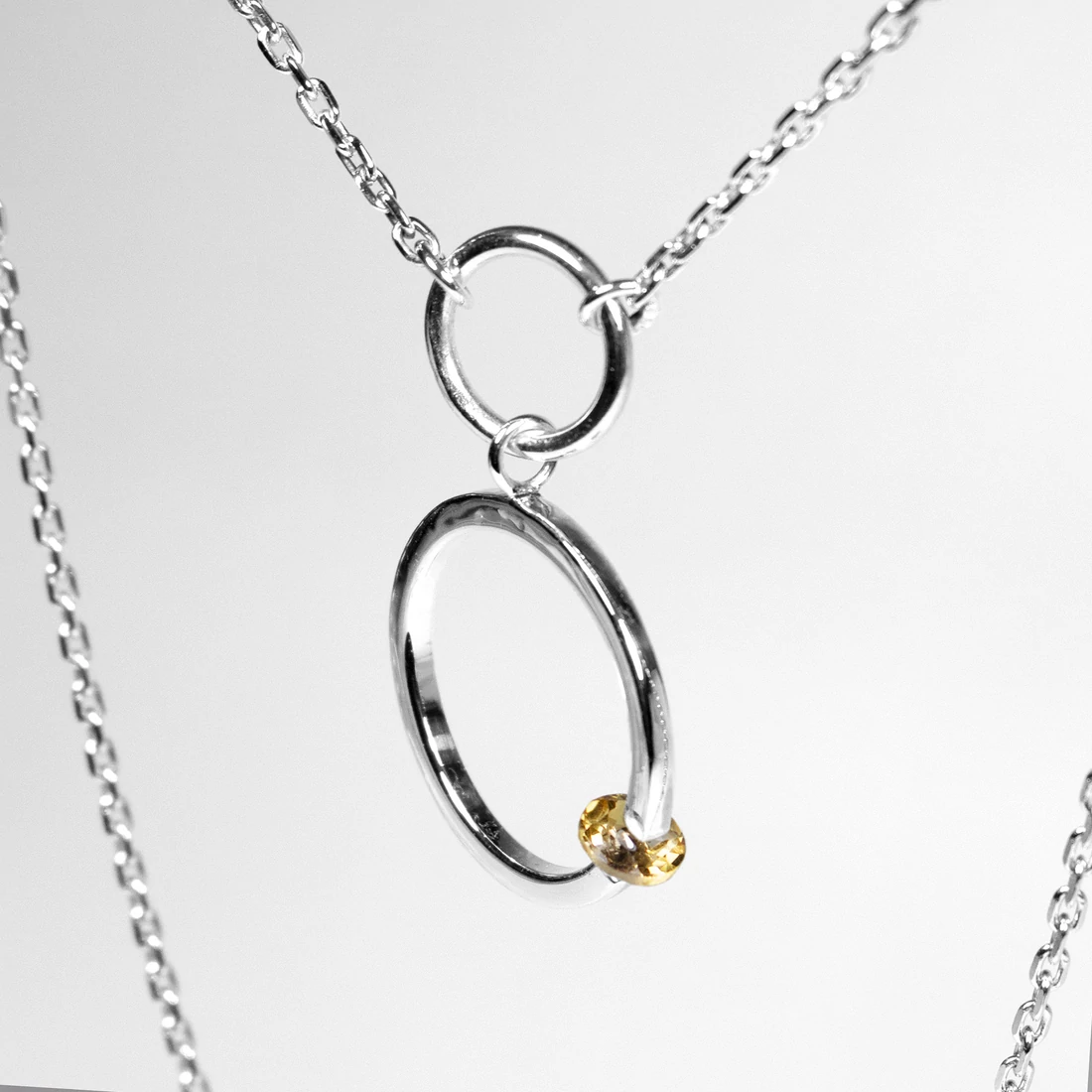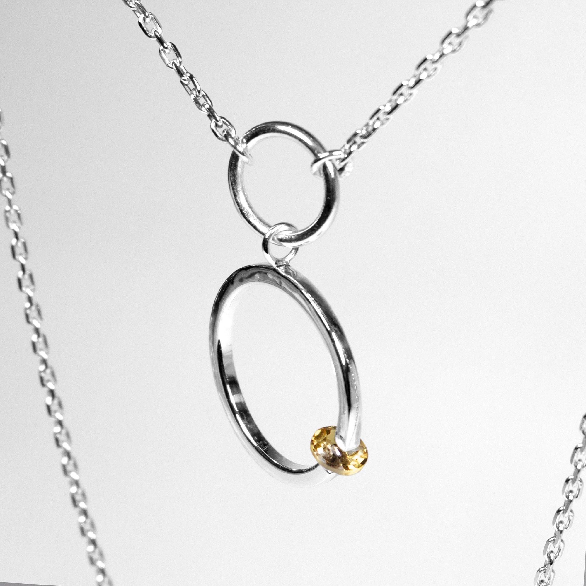 A floating stone ezüst nyaklánc letisztult egyszerű design. Az ékszer központi részén egy valódi sárga citrin kő található. A lánc 50 cm hosszú, állítható. Ez a nyaklánc tökéletes választás mindennapi viseletre és különleges alkalmakra egyaránt. Ahogy azt a neve is idézi a kő "lebegtetve" feszítve van két anyag között, ezért alváshoz, fürdéshez miden esetben ajánlott pihentetni.