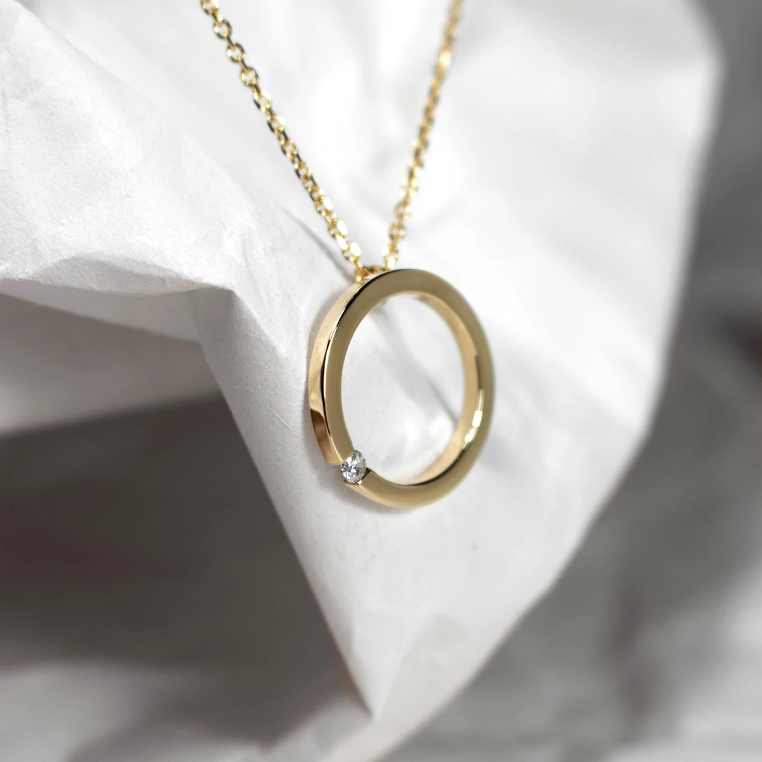 A floating stone arany nyaklánc letisztult egyszerű design. Az ékszer központi részén egy valódi természetes briliáns csiszolású gyémánt található. A lánc 45 cm hosszú, állítható. A könnyen kezelhető "ugró" zár segítségével könnyedén lehet kisebbre is alakítani. Ez a nyaklánc tökéletes választás mindennapi viseletre és különleges alkalmakra egyaránt. Ahogy azt neve is idézi a kő "lebegtetve" feszítve van két anyag között, ezért alváshoz, fürdéshez miden esetben ajánlott pihentetni.