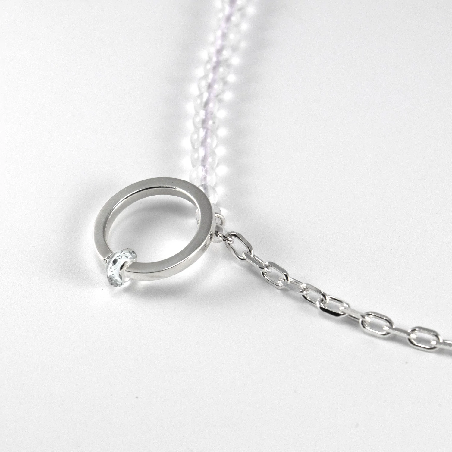 A kollekció védjegyeivel készült kapszulakollekció a nyár vidám, színes hangulatát idézi. A minimál dizájnt az átlátszó hegyikristály gyöngyök mellett egy valódi, világos, szinte színtelen topáz egészíti ki. A nyaklánc 40 cm hosszú, az ásványokat pedig egy tömör, hosszúkás anker lánc köti össze.
