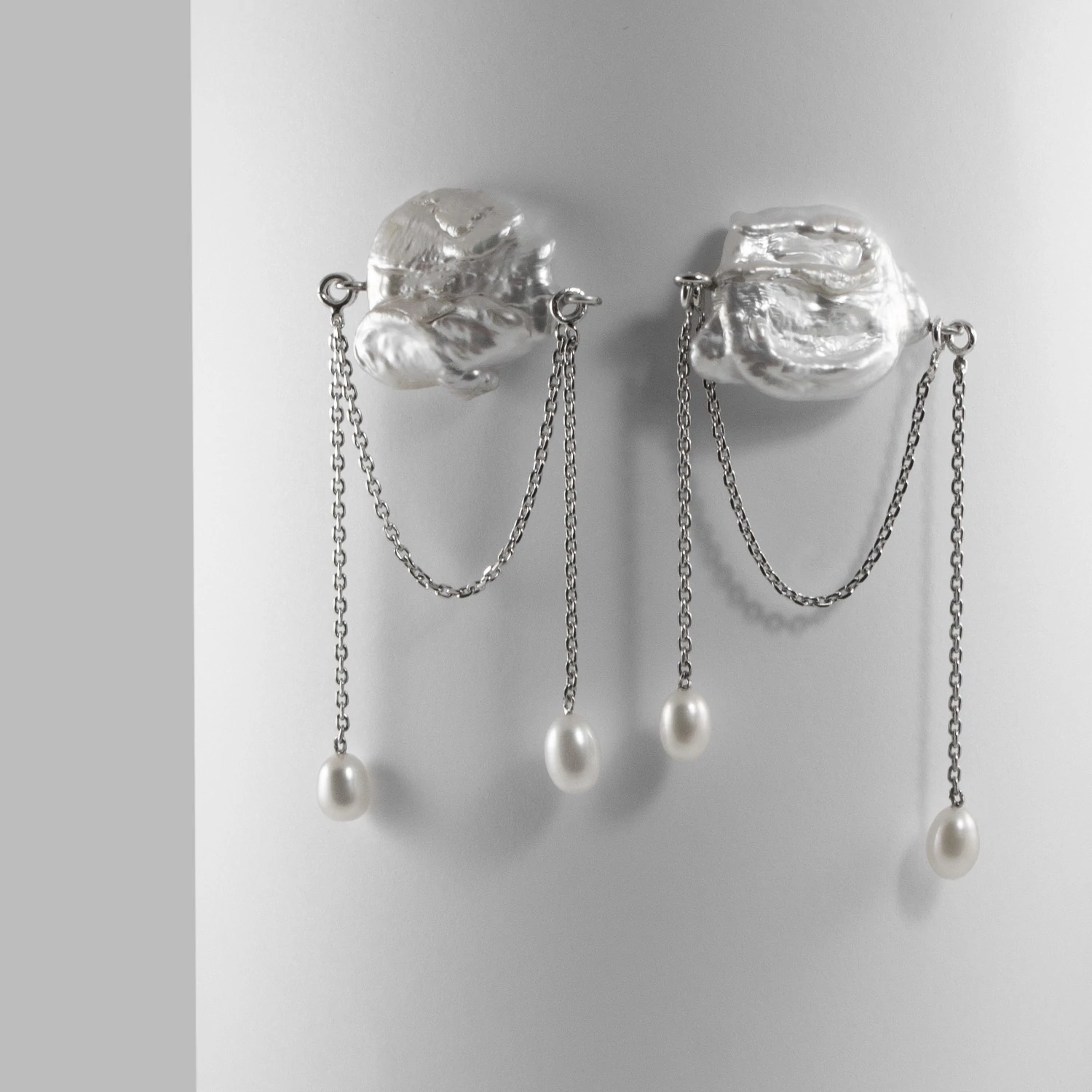 A Medúza barokk gyöngy fülbevaló nem csupán ékszer, hanem a tenger mélyének művészi interpretációja. A nagyobb gyöngy finom rögzítése és a kisebb gyöngyök láncon való lebegése a medúzák légies, finom mozgását idézik.