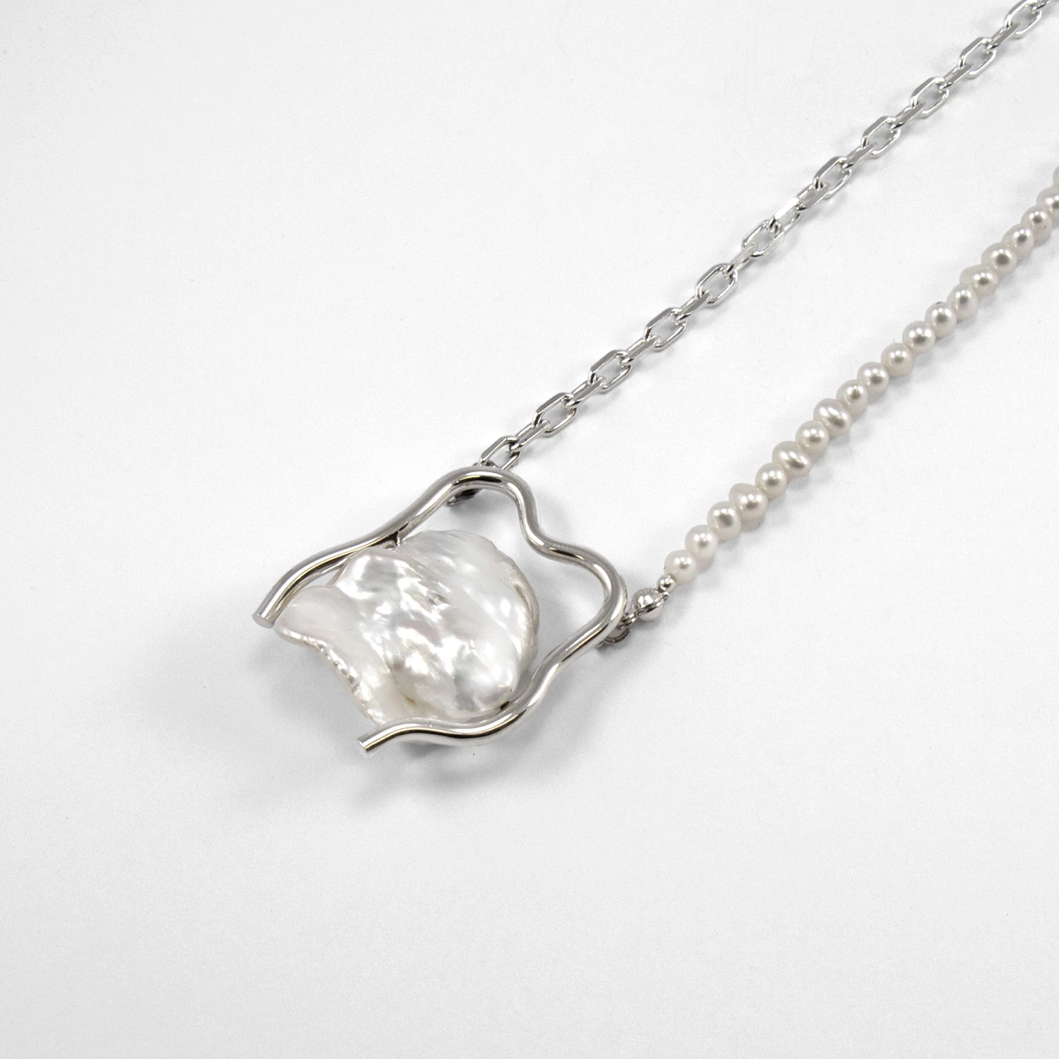 Ez a kézzel készített ezüst nyaklánc tökéletesen ötvözi a minimalista dizájnt és az izgalmas természetbeni organikus formák találkozását.