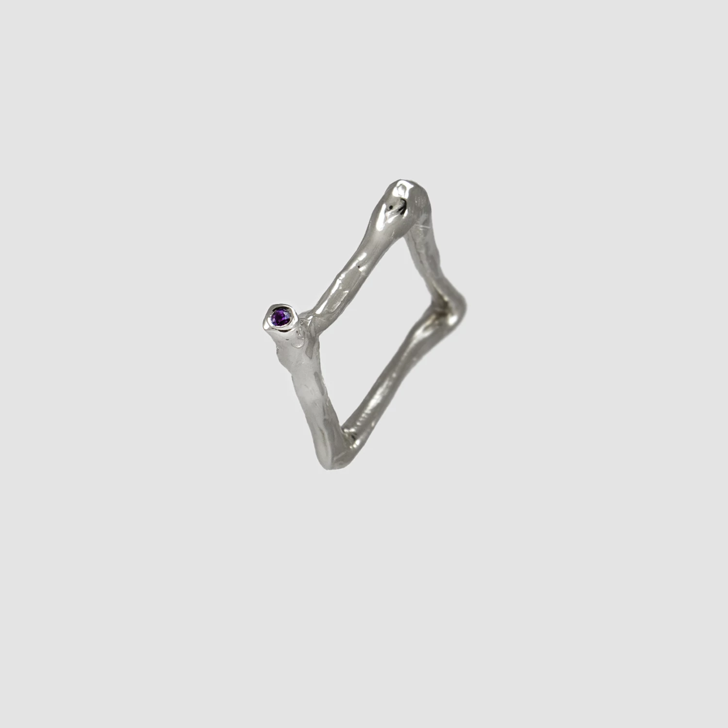 A Mold Art kollekció jegyeivel készült gyűrű, központi eleme egy valódi természetes lila ametiszt drágakő. Tömör 925% ezüstből készült, rusztikus kialakítással ami még egyedibbé teszi az ékszert.