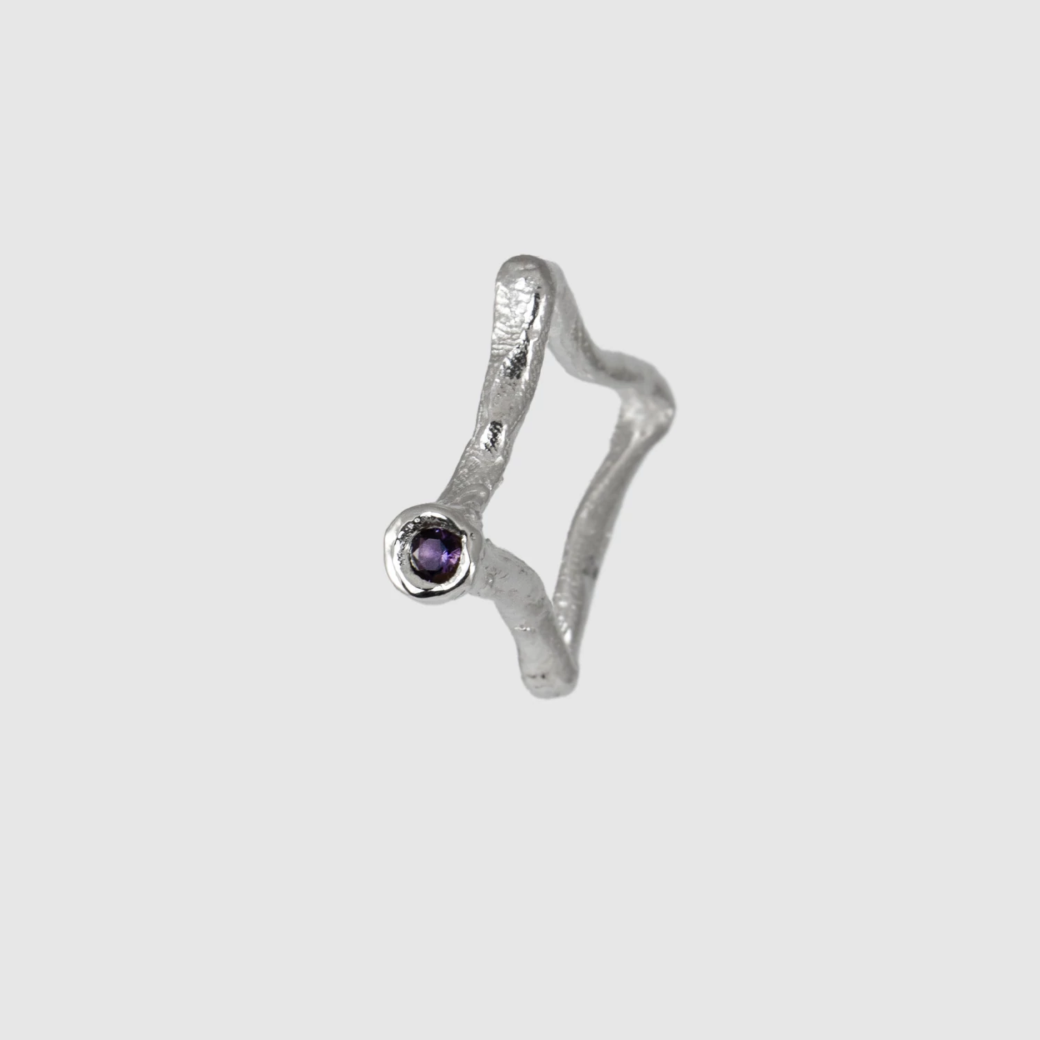A gyűrű tömör, organikus kialakítása tartósságot és határozott megjelenést kölcsönöz, ezért mindennapi viseletre is ideális. A gyűrűben valódi természetes ametiszt kő van foglalva.