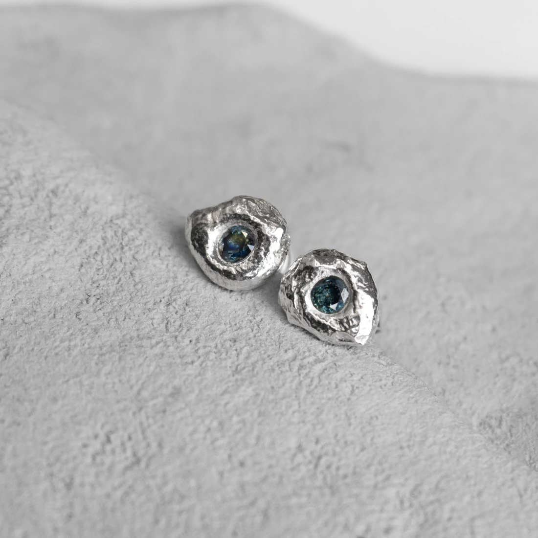 A kollekció jegyeit viselő fülbevaló központi elemei a természetes kékes zöld színű zafír drágakövek, amelyeket tömör 925% ezüst ölel körül. A Drops ékszerek a Mold Art kapszulakollekciói, amelyek egyedi technikával készülnek: a kövek a fém olvasztásának folyamatában kerülnek az anyagba, ahol az olvadó ezüst lágyan körbefonja őket, így születnek meg megismételhetetlen formáik.