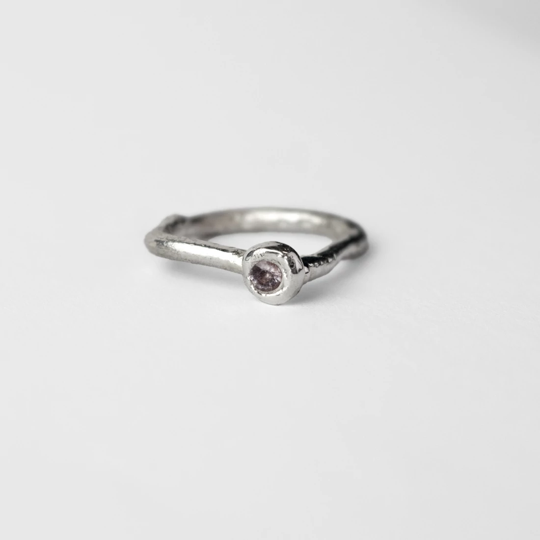 A kollekció jegyeit viselő gyűrű központi eleme egy természetes világos lilás zafír drágakő, amelyet tömör 925% ezüst ölel körül. A Drops ékszerek a Mold Art kapszulakollekciói, amelyek egyedi technikával készülnek: a kövek a fém olvasztásának folyamatában kerülnek az anyagba, ahol az olvadó ezüst lágyan körbefonja őket, így születnek meg megismételhetetlen formáik.