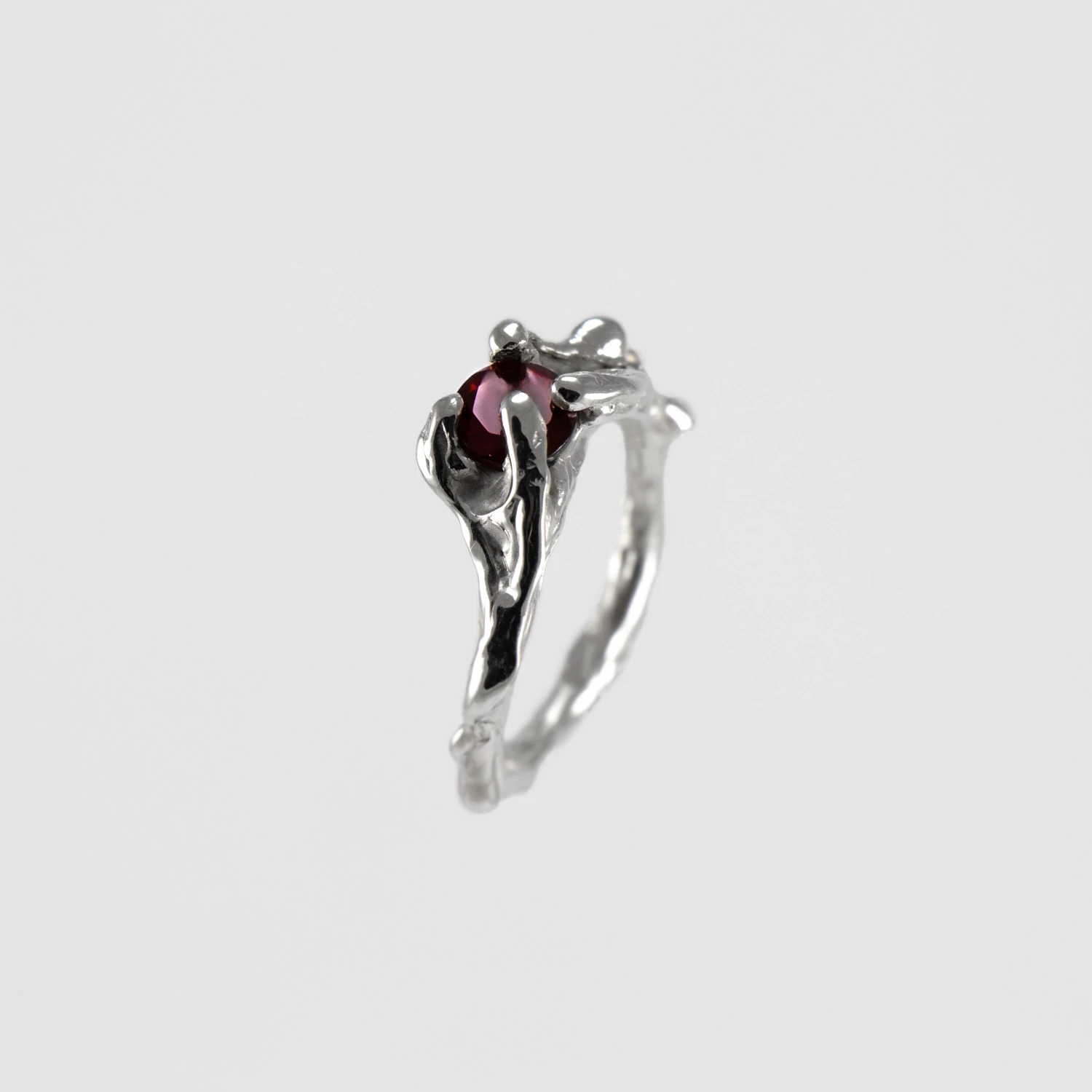 A gyűrű tömör, organikus kialakítása tartósságot és határozott megjelenést kölcsönöz, ezért mindennapi viseletre is ideális. Közepén kerek, valódi gránát kő található.