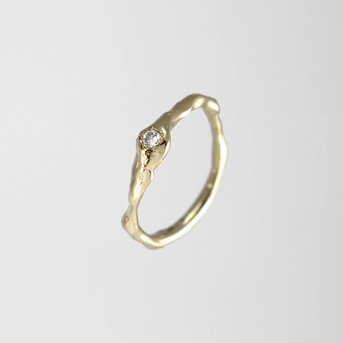 A Mold Art kollekció tökéletesen ötvözi a minimalista dizájnt és a modern ékszerkészítést. Ezt a gyűrűt rusztikus felülete és a benne foglalt valódi természetes briliáns csiszolású gyémánt teszi különlegessé. A gyűrű tömör kialakításának köszönhetően mindennapi viseletre is alkalmas.