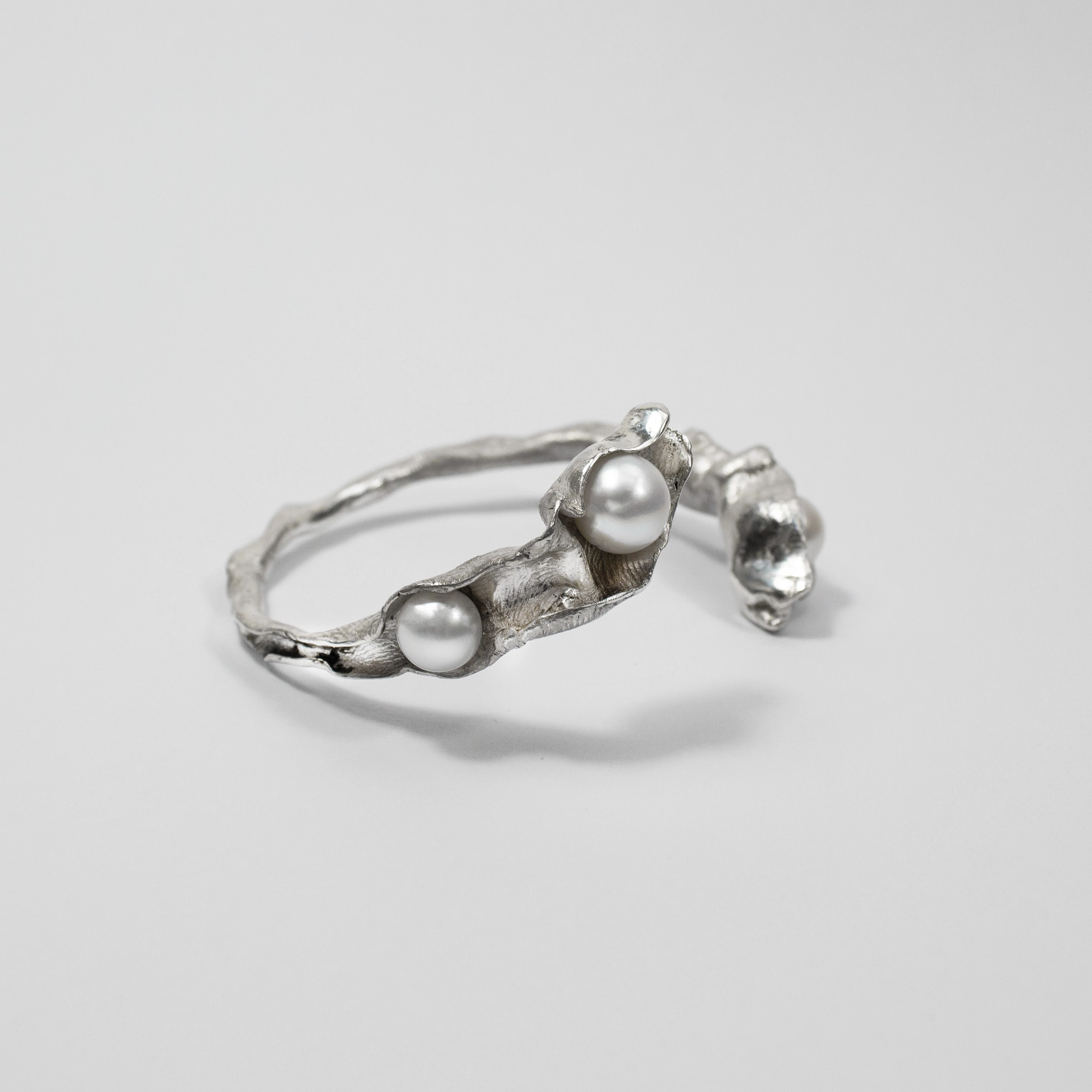 A Mold Art Pearl ezüst karperec ezüstből készült, melyet kézzel formáltunk meg. A karperec teljesen tömör kialakítású, ahogy az összes termékünk. A szabadon formázásnak köszönhetően vált egyedivé és különlegessé. A karperec nyitott könnyen felvehető és levehető. Valódi természetes édesvízi gyöngyökkel díszítve. Ez a karperec tökéletes választás mindennapi viseletre vagy különleges alkalmakra. A gyöngyök sokáig azért voltak nagyra értékelve, mert szimbolizálták a tisztaságot és a szépséget. Mivel a gyöngyök természetes módon formálódnak, sokan az őszinte és természetes szépség jelképeként tekintenek rájuk.