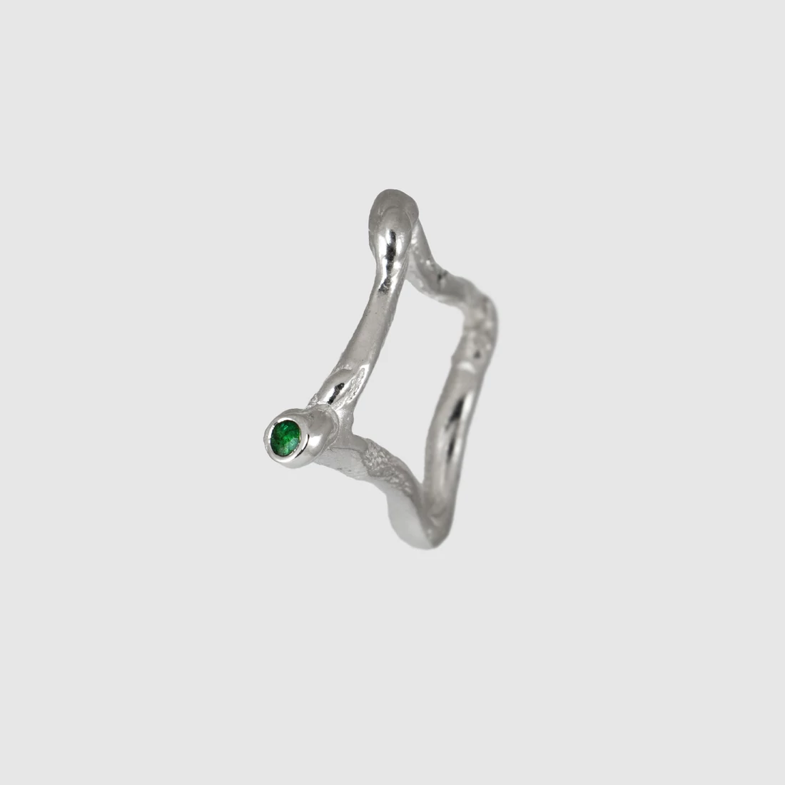A gyűrű tömör, organikus kialakítása tartósságot és határozott megjelenést kölcsönöz, ezért mindennapi viseletre is ideális. A gyűrűben valódi természetes smaragd kő van foglalva.