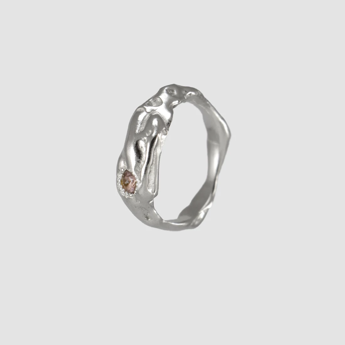 A Mold Art kollekció jegyeivel készült gyűrű központi eleme egy valódi, rózsaszínes-sárgás árnyalatú kis turmalin drágakő. Tömör 925-ös ezüstből készült, egyedi, rusztikus kialakításával igazán különlegessé válik.