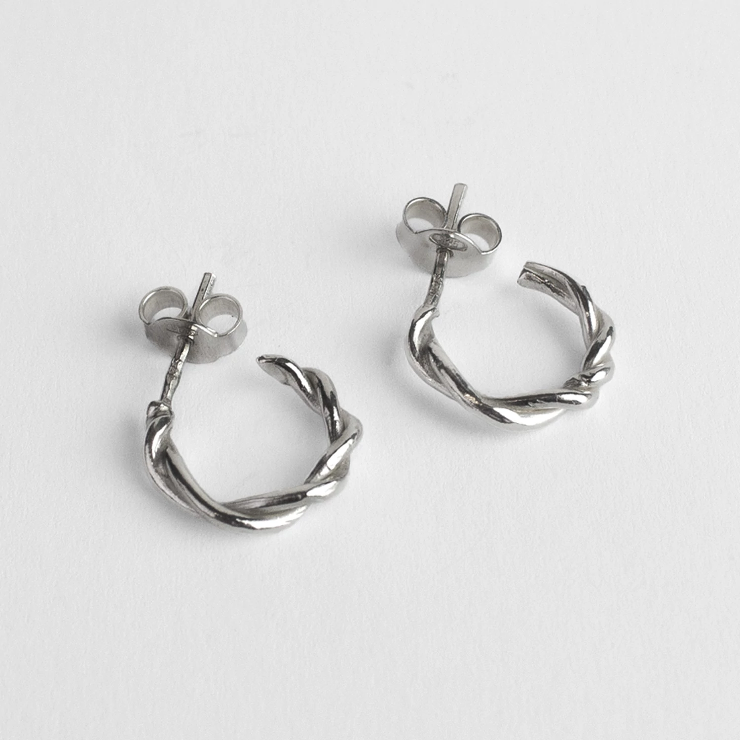 A Mold Art kollekció jegyeit viselő, rusztikus kialakítású tömör ezüst fülbevaló különlegességét nemcsak a felület textúrája, hanem egyedi csavart formavilága is adja.