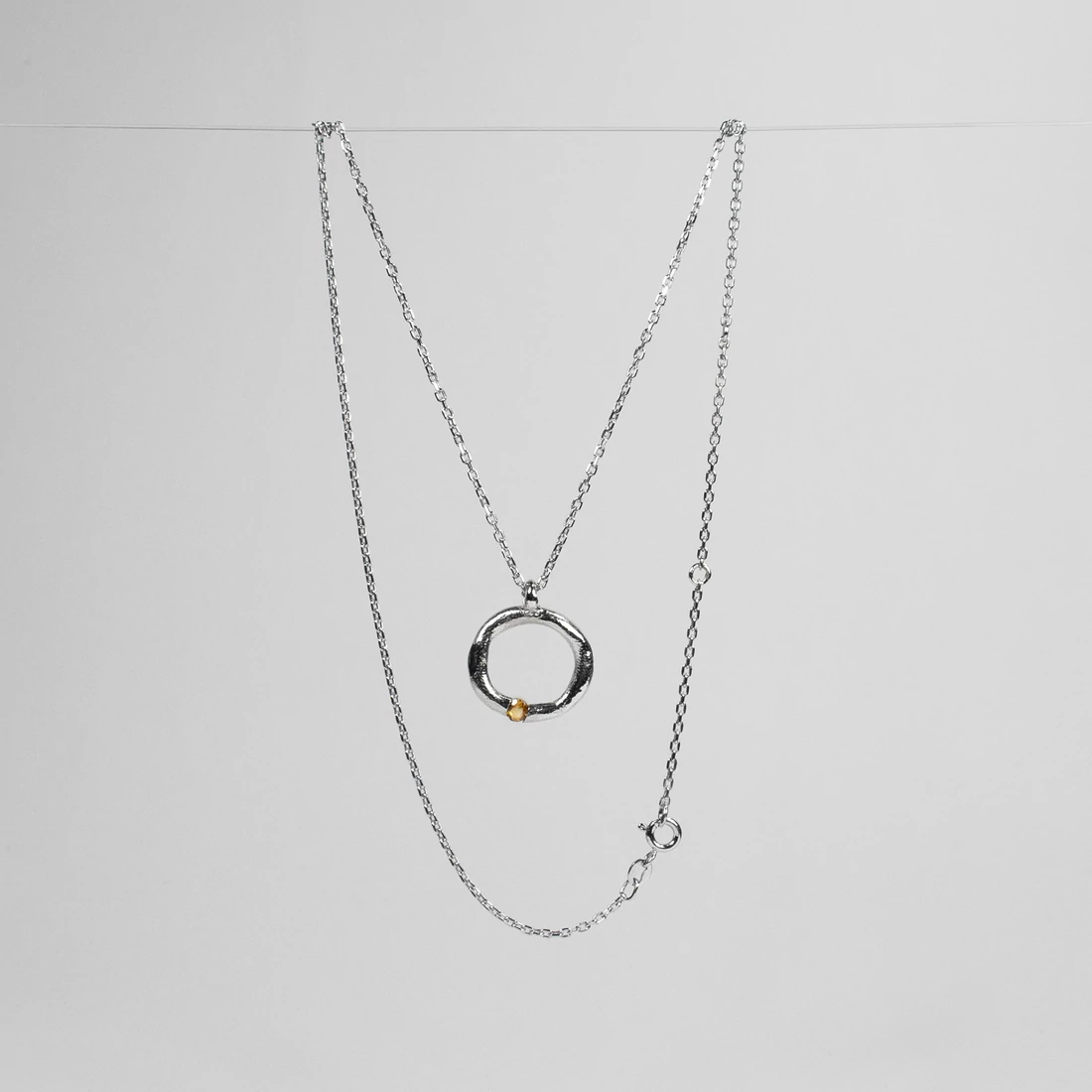 A SUMMER BREEZE nyakláncot viaszból kifaragva mintáztuk meg, majd öntési technológiával készítettük el tömör ezüstből. Az ékszer központi részén egy valódi sárga citrin kő található. A lánc 47 cm hosszú, állítható. A könnyen kezelhető "ugrós" zár segítségével könnyedén lehet kisebbre is alakítani. Ez a nyaklánc tökéletes választás mindennapi viseletre, egy csipetnyi természetes bájt ad öltözéknek.