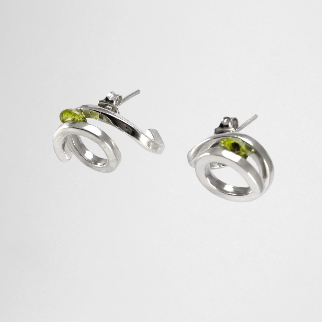 - Zöld peridot (olivin) kövek díszítik.